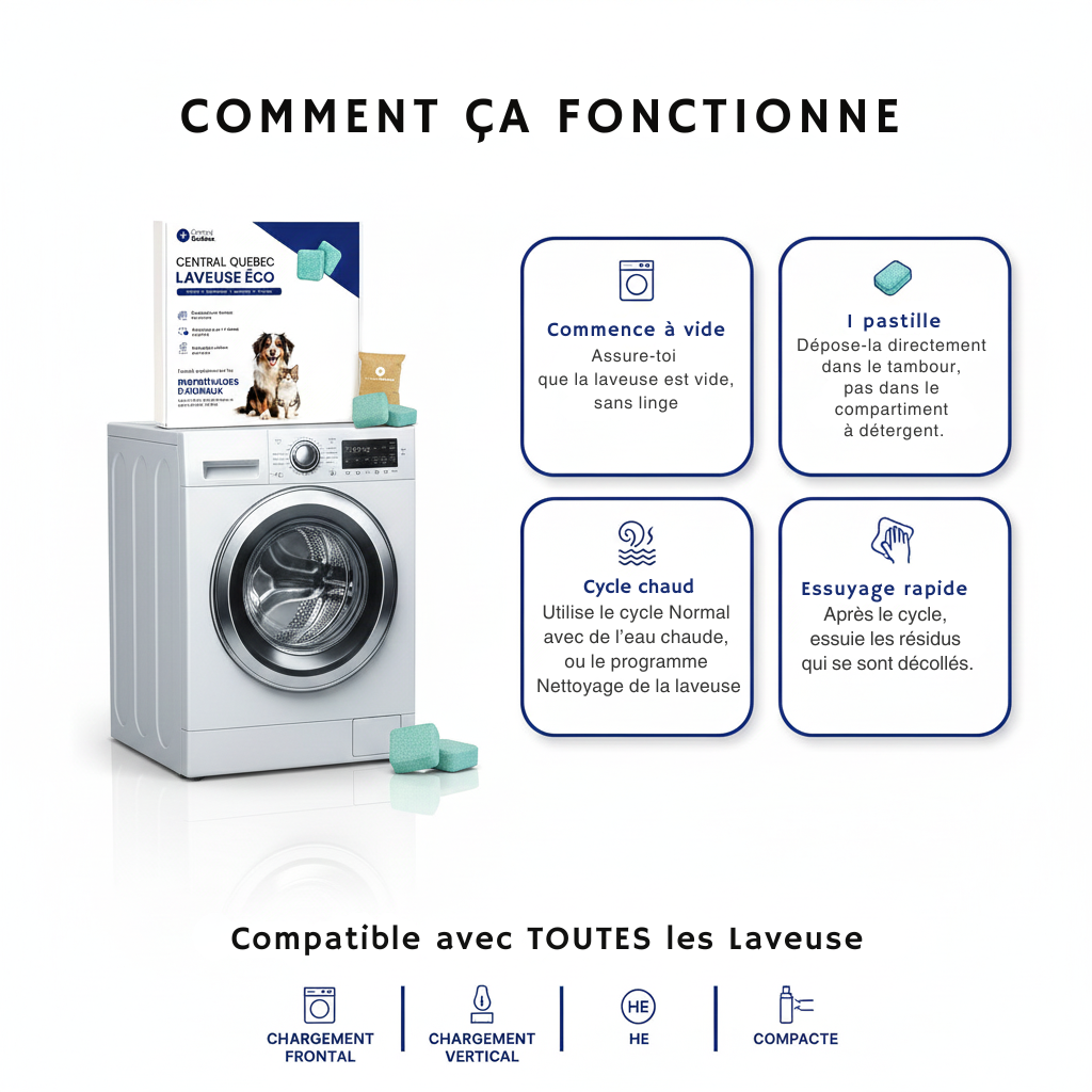 Des milliers de foyers ont découvert la vérité sur leur laveuse. Avec Central Québec, ils ont vu l'eau devenir grise dès le tout premier cycle et se sont retrouvés avec une machine vraiment propre, fraîche et sans odeurs.