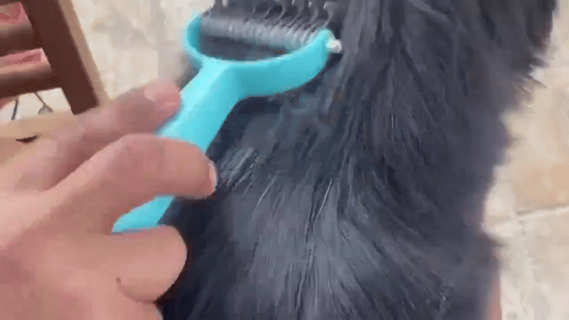 Le côté avec moins de dents est fait pour démêler les nœuds tenaces, tandis que le côté avec plus de dents sert à enlever doucement le poil qui tombe pis à défaire le sous-poil.